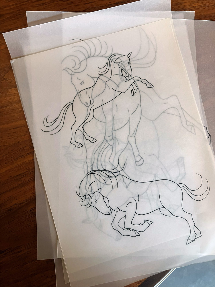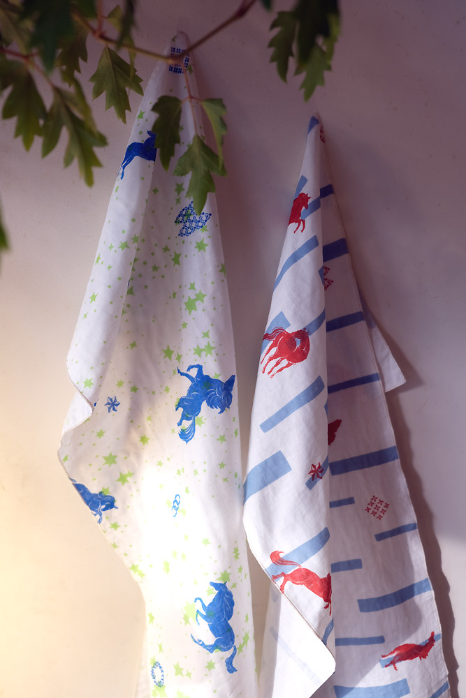 馬を使ったテキスタイルは何種類かあるけれど、干支にちなんで「馬」のテキスタイルが出来上がりました。